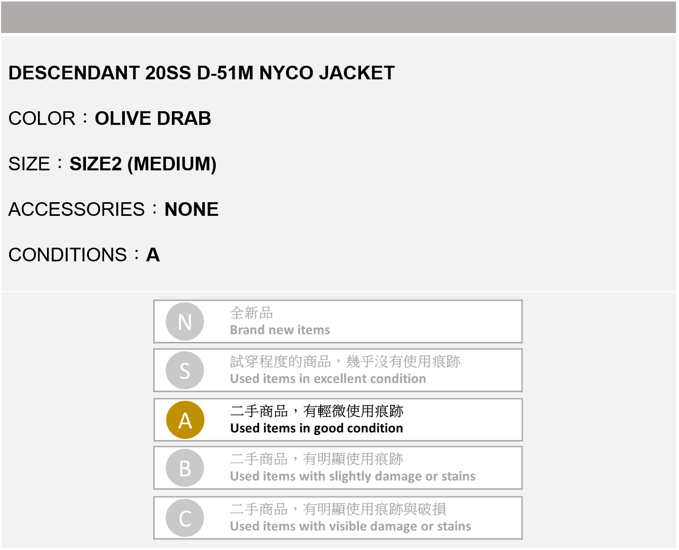 DESCENDANT 20SS D-51M NYCO JACKET 軍綠色 2號