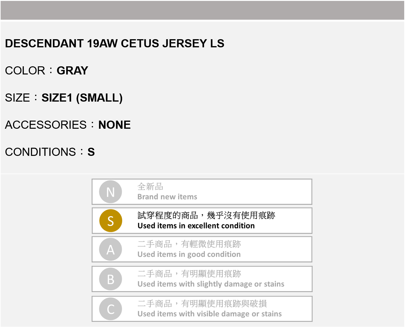 DESCENDANT 19AW CETUS JERSEY LS 灰色 1號