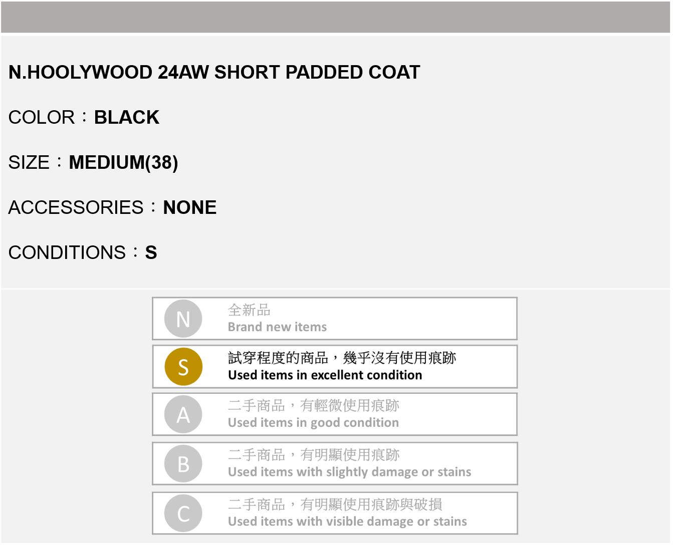 N.HOOLYWOOD 24AW SHORT PADDED COAT 黑色 M號