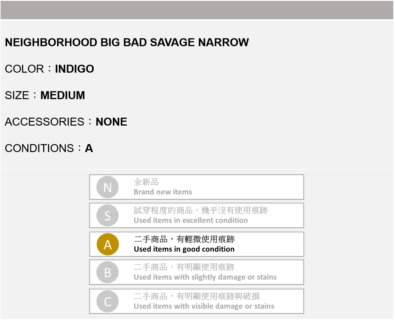 NEIGHBORHOOD BIG BAD SAVAGE NARROW 藍色 M號