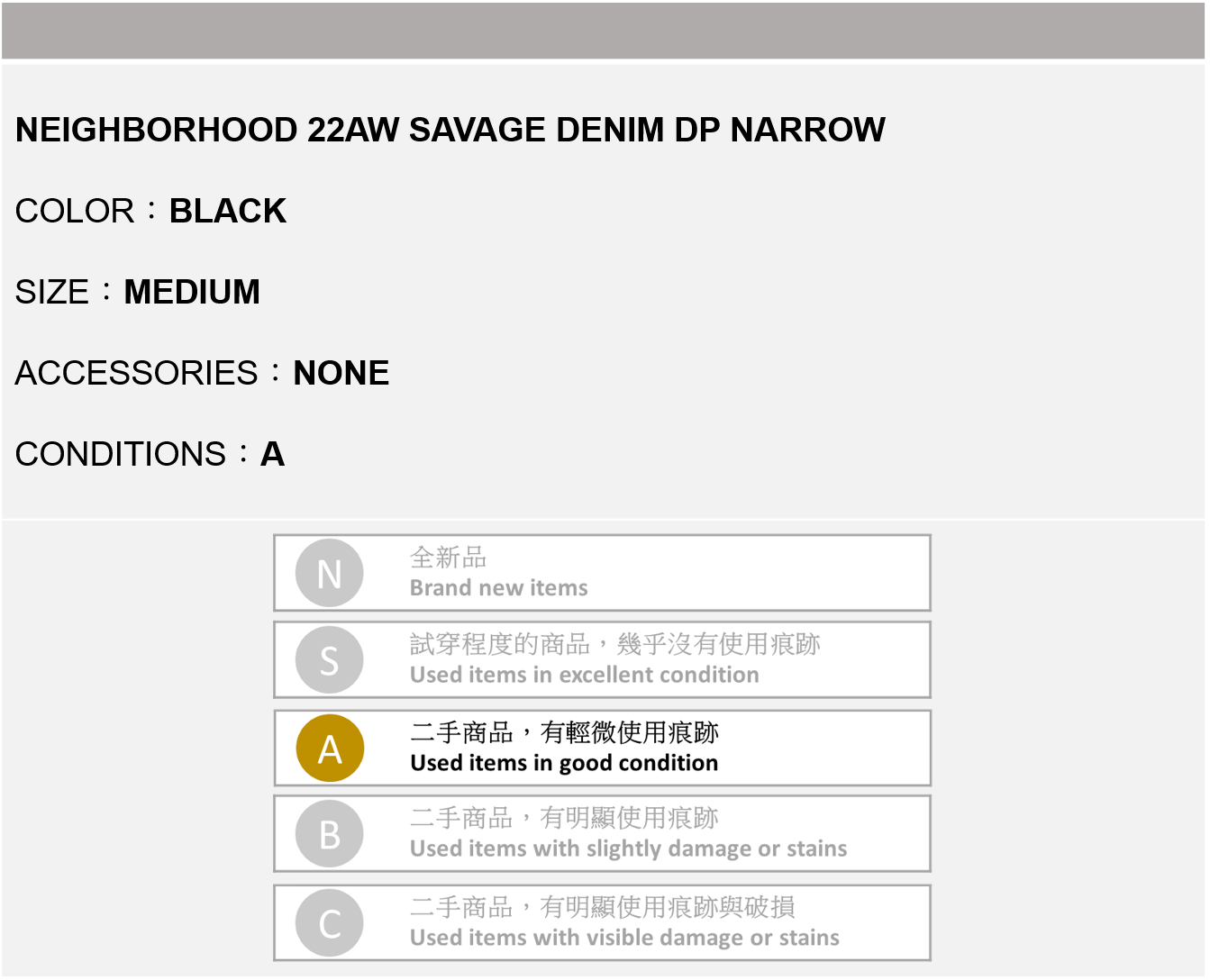 NEIGHBORHOOD 22AW SAVAGE DENIM DP NARROW 黑色 M號