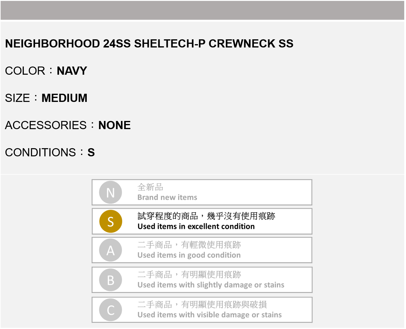 NEIGHBORHOOD 24SS SHELTECH-P CREWNECK SS 深藍色 M號