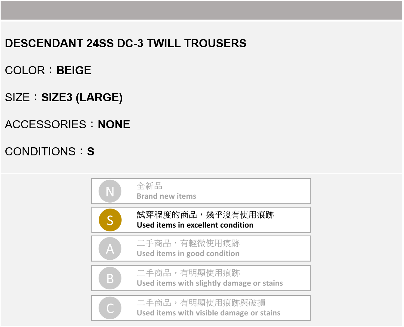 DESCENDANT 24SS DC-3 TWILL TROUSERS 卡其色 3號