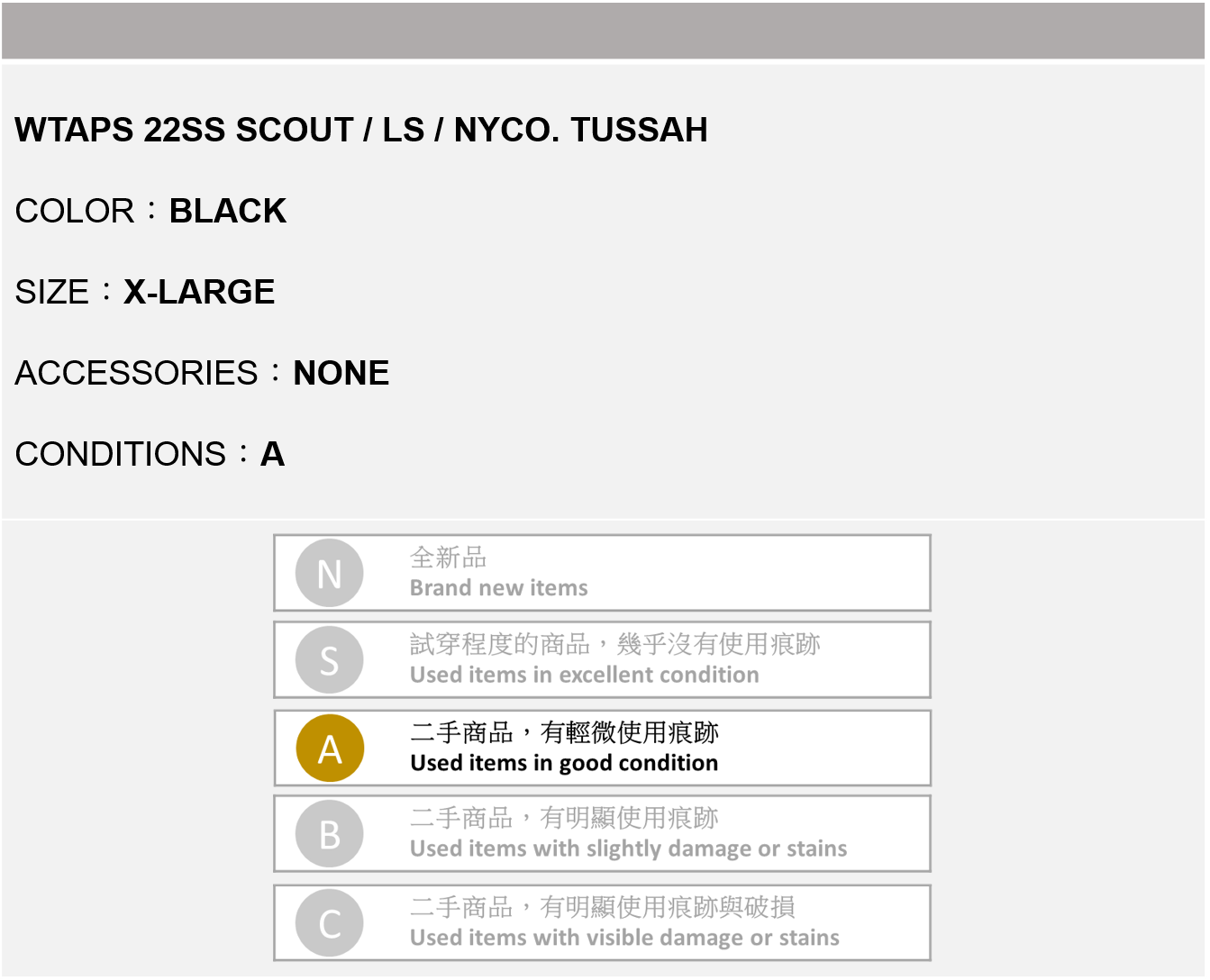 關於商品狀況