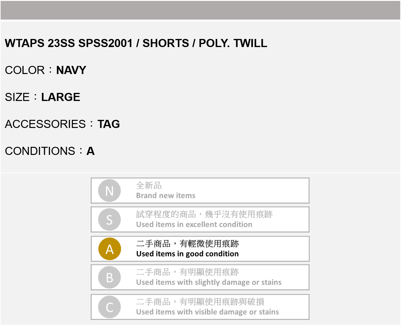 WTAPS 23SS SPSS2001 / SHORTS 深藍色 L號