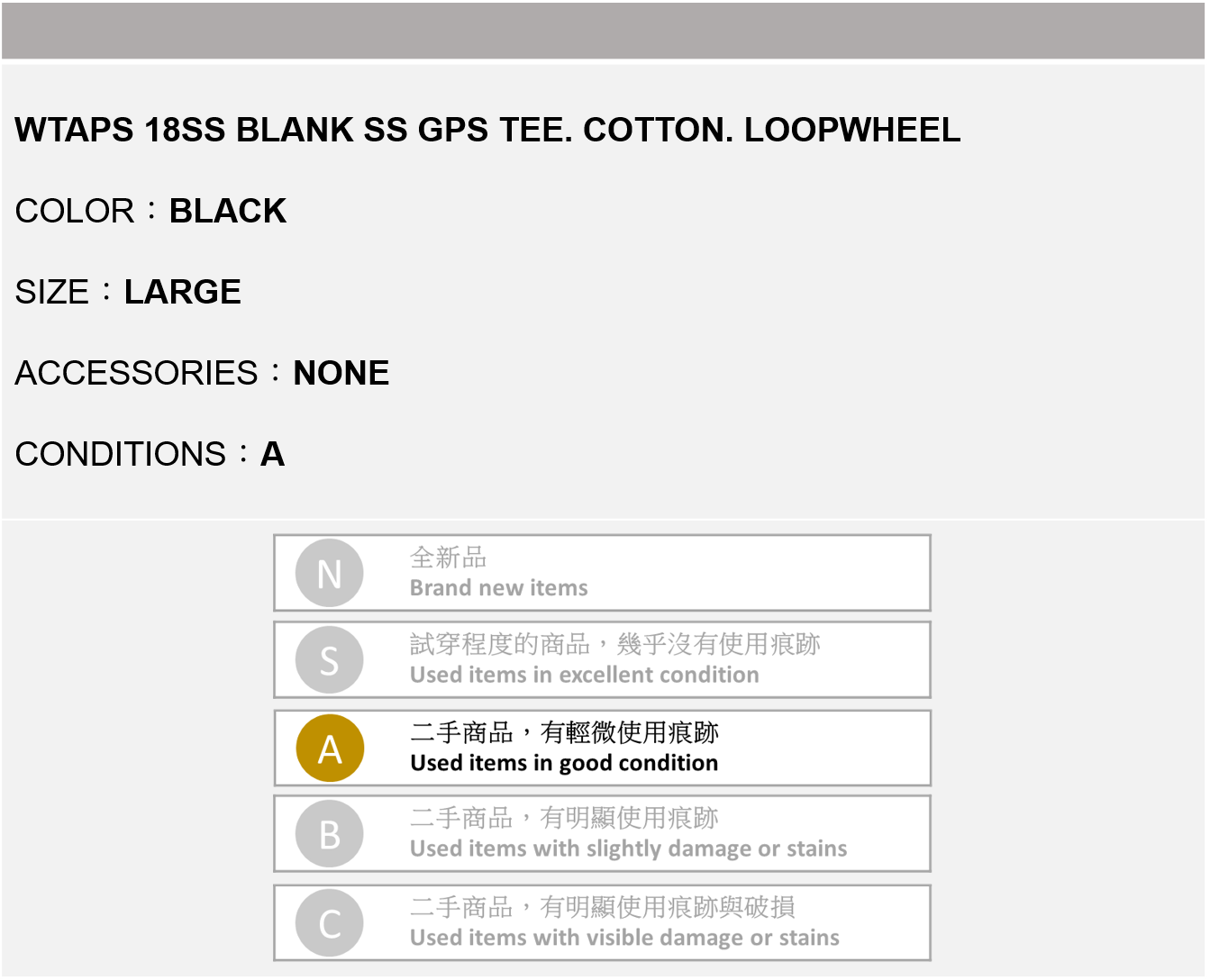 WTAPS 18SS BLANK SS GPS TEE 黑色 L號
