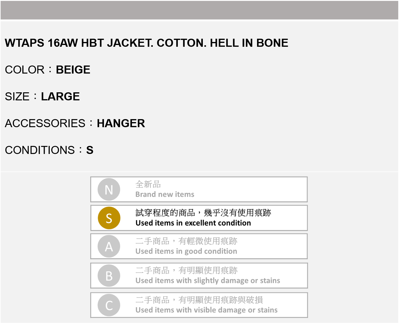 WTAPS 16AW HBT JACKET 卡其色 L號