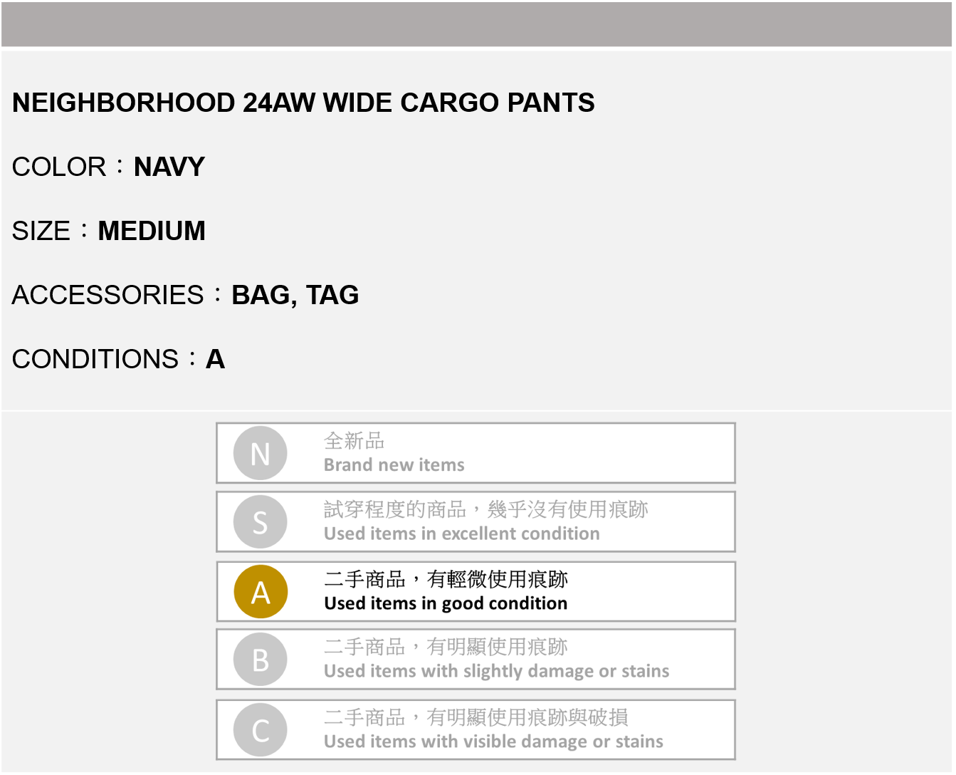 NEIGHBORHOOD 24AW WIDE CARGO PANTS 深藍色 M號