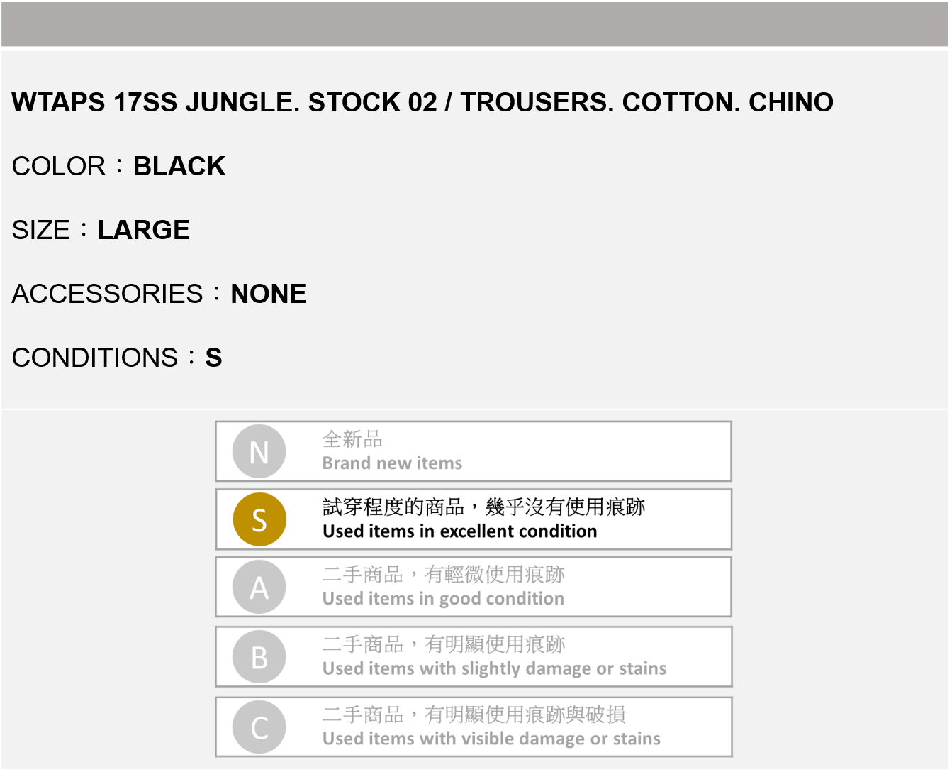 WTAPS 17SS JUNGLE. STOCK 黑色 L號