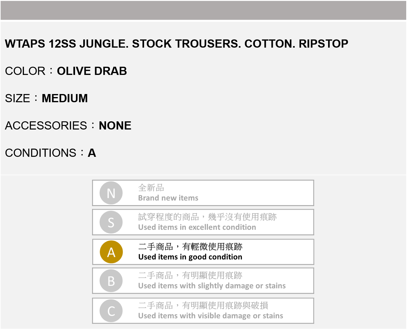 關於商品狀況