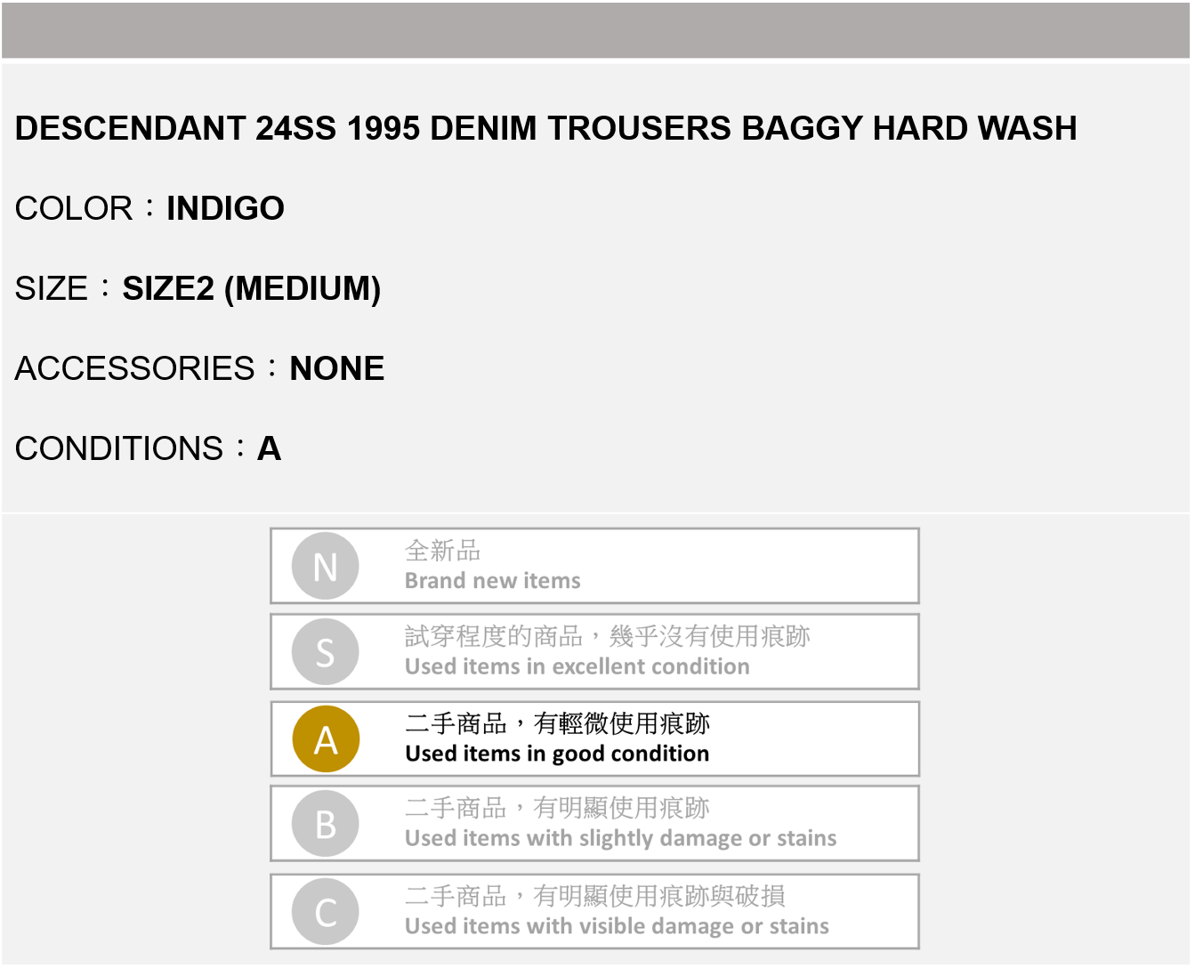DESCENDANT 24SS 1995 DENIM TROUSERS BAGGY HARD WASH 藍色 2號