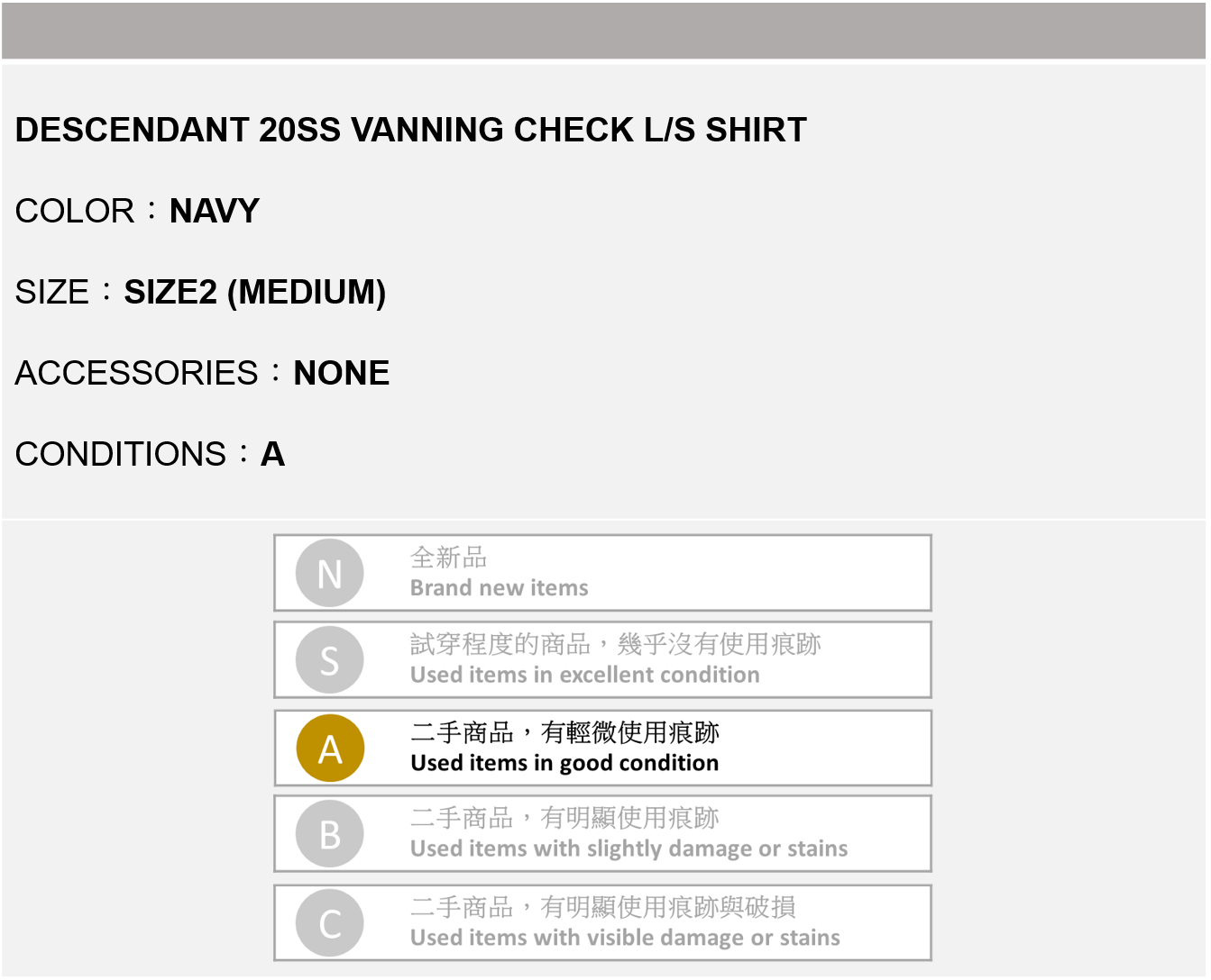 DESCENDANT 20SS VANNING CHECK L/S SHIRT 藍色 2號