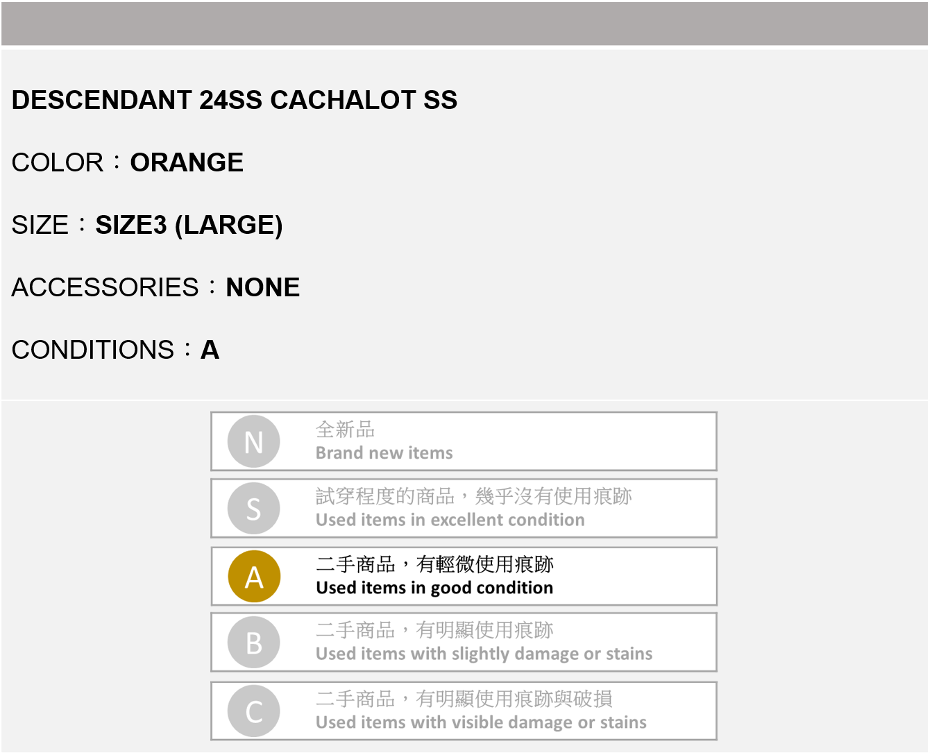 DESCENDANT 24SS CACHALOT SS 橘色 3號