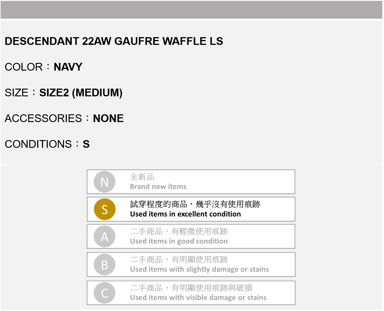 DESCENDANT 22AW GAUFRE WAFFLE LS 深藍色 2號