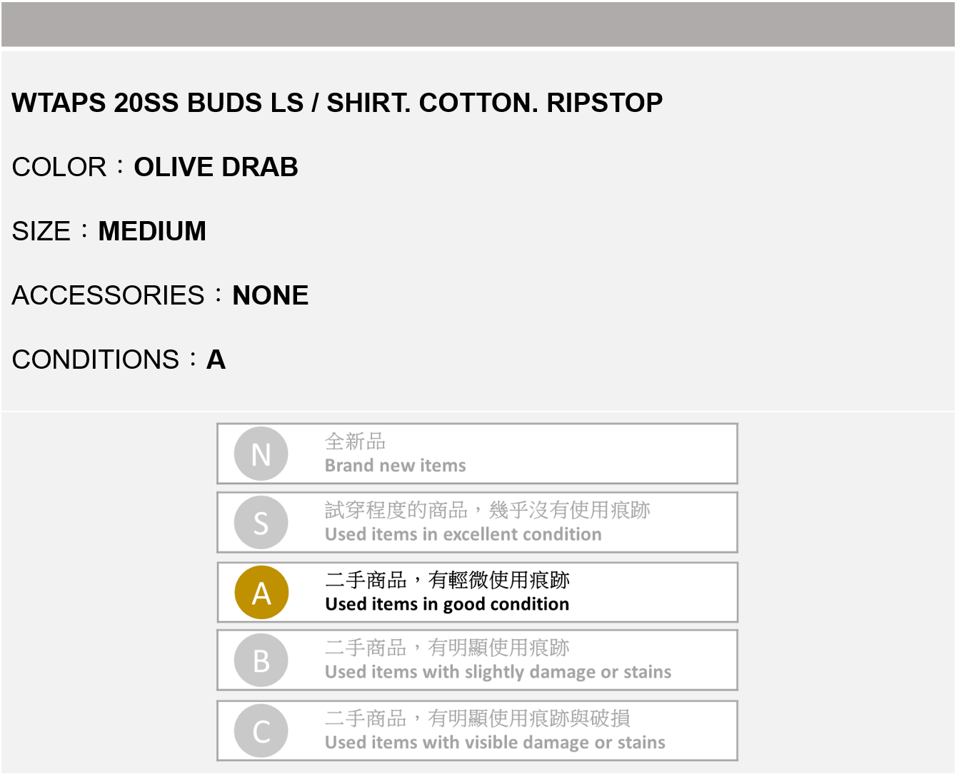 WTAPS 20SS BUDS LS / SHIRT 軍綠色 M號