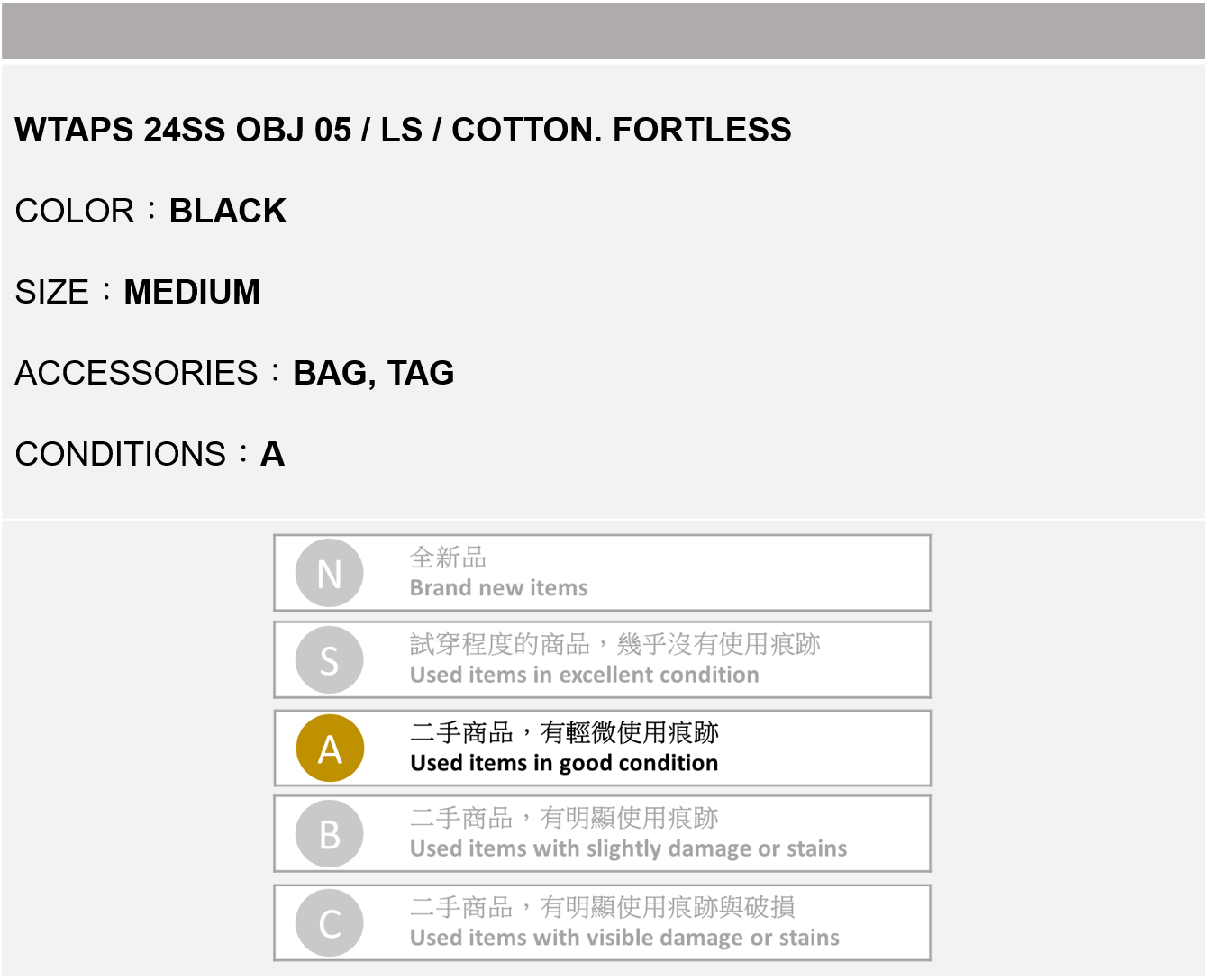 WTAPS 24SS OBJ 05 / LS 黑色 M號