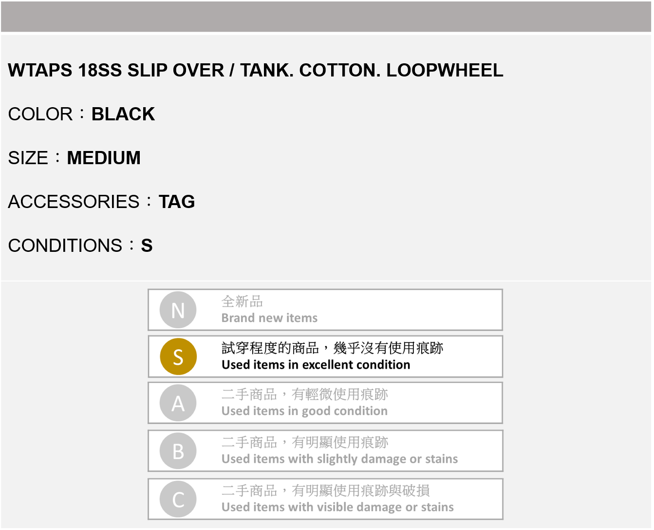 WTAPS 18SS SLIP OVER / TANK 黑色 M號
