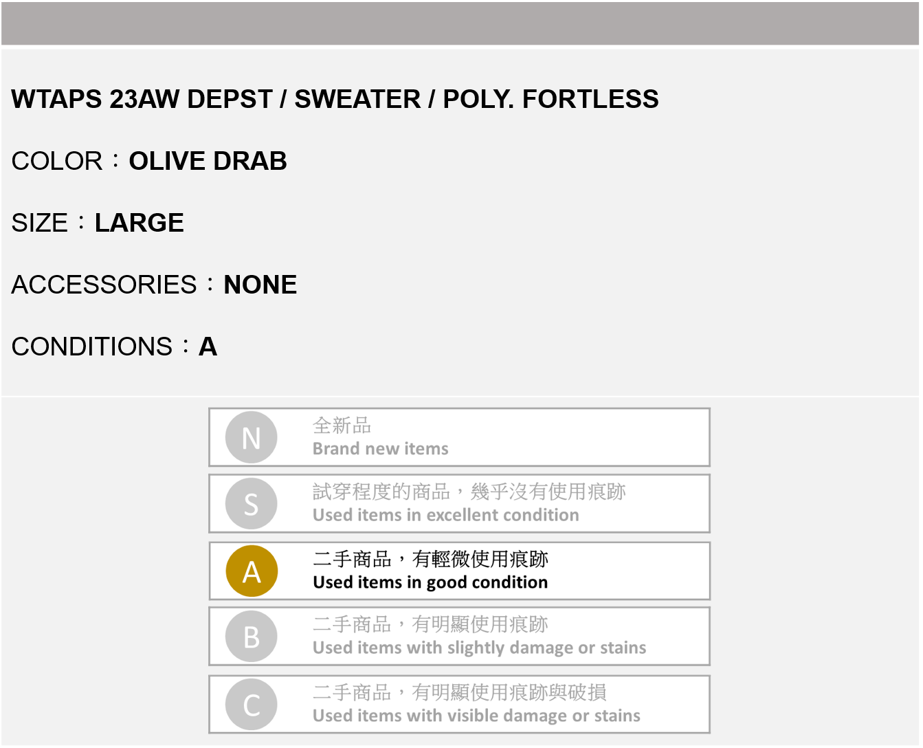 WTAPS 23AW DEPST / SWEATER 軍綠色 L號